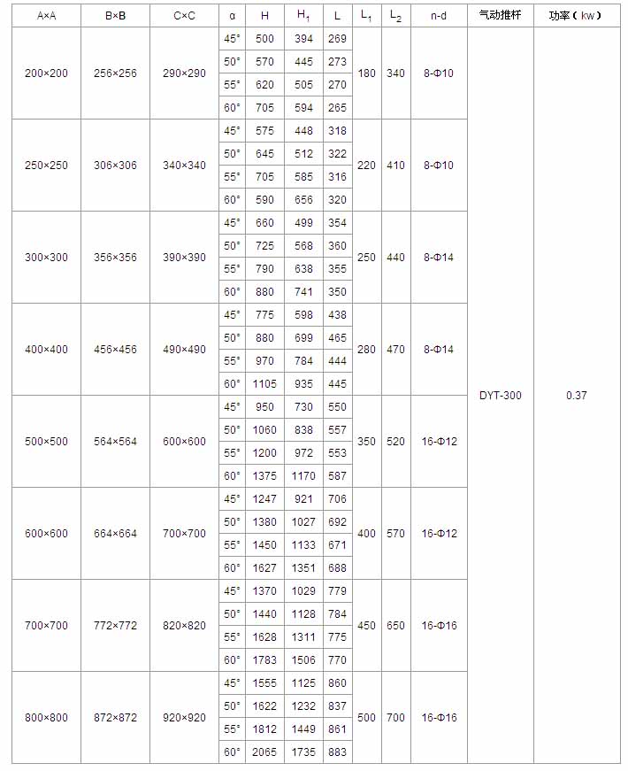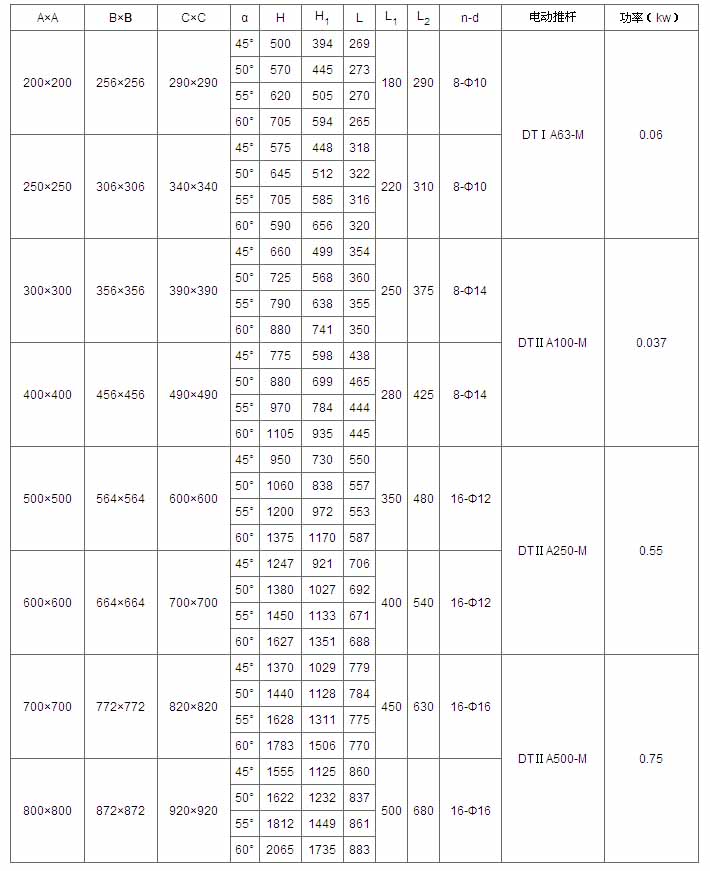 A×A B C×C α H L L1 L2 n-d 電動(dòng)裝置 功率(kw)