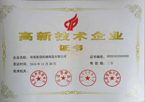 江蘇振強機械科技股份有限公司 >> 公司簡介 >> 資質(zhì)證書 >> 高新技術(shù)企業(yè)證書